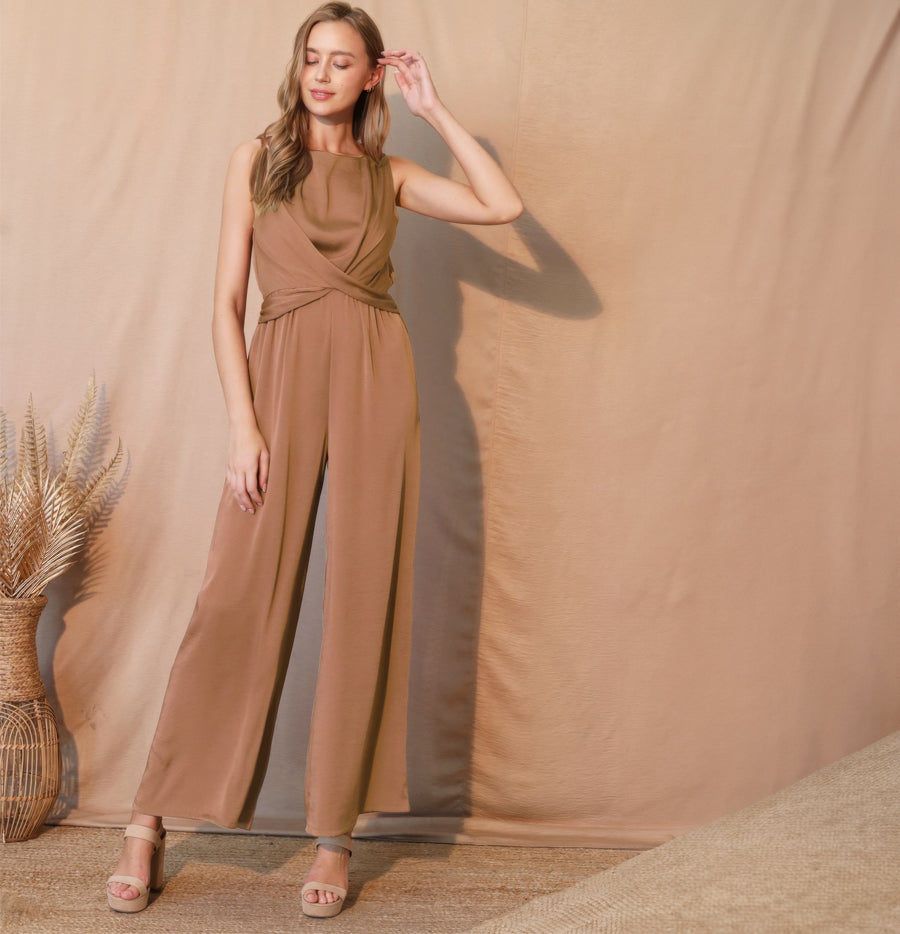 V Neck Suspenders Wide Leg Side Slit Jumpsuit